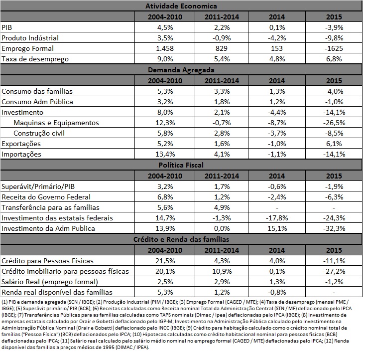O pedido do grande amigo Ricardo Bielschowsky – que me convidou para ministrar hoje em seu curso de pós-graduação uma aula sobre a economia brasileira no governo Dilma – me obrigou a revisar os dados e atualizar para o ano de 2015 a tabela do artigo “Demanda agregada e a desaceleração do crescimento econômico brasileiro de 2011 a 2014” (Serrano e Summa, 2015).