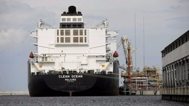 O discurso foi proferido na Polônia e não foi por acaso que Trump marcou sua visita a Varsóvia para algumas semanas após a chegada do primeiro navio gaseiro americano ao país (foto abaixo). Também não foi coincidência o presidente americano ter defendido publicamente, na ocasião, que os países europeus não podiam tornarem-se “reféns” de um único fornecedor de energia e que os EUA se comprometiam a “dar acesso a outras fontes de energia” aos europeus.